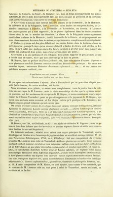 ![Salicaire, du Tamarin, du Saule, du Manglier, etc., dont on ferait nécessairement des genres différents. Il arrive donc nécessairement dans ces deux cas que la précision et la certitude sont sacrifiées lorsqu’on veut suivre ce système numérique. 3“ Ce système n’est pas clair surtout dans les classes de la Gynandrie , de la Monœcie , de la Diœcie et de la Polygamie, dont l’intention et les limites ne sont point fixées , la Gy- nandrie permettant à YOrchis, à la Grenadille, à l’Aristoloche, au Gretvia, à Y Arum et aux autres genres qui y sont rapportés, de se placer également dans les treize premières classes dont ils ont le nombre des étamines. La classe de la Polygamie rentre également tantôt dans la classe de la Monœcie , tantôt dans celle de la Diœcie, et réciproquement ces trois classes rentrent les unes dans les autres, ce qui démontre complètement leur irrégularité. 4“ Enfin ce système est des plus difficiles et des moins fondés dans la huitième classe de la Syngénésie, puisqu’il exige qu’on s’assure d’abord si toutes les fleurs sont stériles ou fer- tiles, et qu’il suffit que quelques-unes des fleurs viennent à avorter pour faire passer une plante non-seulement d’un genre, mais d’une section dans une autre.] Ce système a eu ses partisans et ses critiques; nous allons rappeler en peu de mots ce qui a été dit pour et contre , et ce que nous croyons qu’on doit en penser. M. Royen, dans sa préface du Flora Leidensis, dit, dans une espèce d’extase ; Sysiema a sexu plantarum condidit Linnæus omnium sœculi sui Botanicorum princeps : hic enim non omnibus impar, universam Botanices doctrinam reformavil ita ul neç purior nec pulchrior unquam exstiterit, imo m Si quid habent veri mtis prœsagia, Florœ Structa super lapklcm non ruet hæcce domus. Et peu après cet enthousiasme il ajoute ; Aller a Tournefortii qui in generibus aliquid prœ- sliiil fuit Linnæus; hic serior accedens, sed doctior. Nous accordons avec plaisir, et môme avec complaisance, toute Injustice due à la célé- brité des ouvrages de M. Linnæus; mais la vérité nous oblige de dire que le système sexuel en question, est fort au-dessous de ce qu’en dit M. Royen , et nous connaissons trop la supé- riorité de l’illustre Tournefort, pour no pas désapprouver et le jugement de M. Royen , qui est si juste en toute autre occasion, et les éloges outrés qu’il prodigue à M. Linnæus, aux dépens du plus grand botaniste qui ait encore paru. On trouve le contre-poison de ces éloges dans une savante critique de Siegesbeck, intitulée Epicrisis in clarissimi Linnœi sysiema plantarum sexuale udjecla botanosophiœ l'erioris brevi sciagraphia. Peiropoli, 1737, in-4, et dans son Vaniloquenliœ bolanicœ specimen , a D. Gledilsch in consideratione Epicriseos Siegesbecldanœ in scripla Bolanica Linnœi, pro rite obti- nendo sexualislæ titulo nuper evulgatum , jure l'ero retorsionis refulalum et elusum. Petropoli, 1741, in-4. - M. Rrowal, en 1739, et Gleditsch, en 1741, ont tâché de défendre M. Linnæus; mais on ne trouve dans leur défense que des invectives et aucune réponse directe et solide aux preuves bien fondées du savant Siegesbeck. Un botaniste moderne, attaché avec raison aux sages principes de Tournefort, qu’il a développés et étendus avec beaucoup de jugement dans un excellent ouvrage intitulé D'. Al- ston Tirocinium Edinburgense, 1753, in-4, Edinburgi, fait une comparaison du système sexuel de M. Linnæus avec celui de Tournefort. Melhodus plantarum sexualis, dit-il, omnium quotquot sunt est maxime involuta ac non naluralis : nullum enim sysiema dalur, orthodoxon sit an heierodoxon, in quo plane dissirnilia conjungunlur, et similia separantur ; et cujus no— titia, ob introductam dialectum Grœcis œque ac Latinis ignotam, ob mutatas soluté vocum nominumque familiares ideas, difficilius acquiritur. Auxilio enim Tournefortii institutionum, et horti plantis 7nethodo suadigestis bene instructi, earum cognitionem multo citiuset facilius, imo sine prœceptore acquiret tiro, quam nomenclaluram Linnœanamvel mediocriter intelligal, adjulus etsi Cel. Gesneriexplicalionibus, sponsalibus plantarum et philosophia Botanica, etc., p. 41. A cette comparaison de M. Alston, on peut ajouter, sans crainte d’être contredit, que le système de M. Linnæus cède en tout point à celui de Tournefort, savoir en bonté, en certitude et en facilité.](https://iiif.wellcomecollection.org/image/b24863890_0049.jp2/full/800%2C/0/default.jpg)
