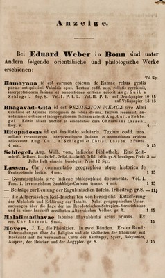Bibliotecae Sanskritae, sive recensvs librorvm Sanskritorvm hvcvsqve typis vel lapide exscriptorvm critici specimen / Concinnavit Ioannes Gildemeister.