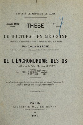 Credit: De l'enchondrome des os ... / par Louis Mercié. Source: Wellcome Collection.