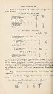 ![sazofstssasi „ O COLONY OF MAURITIUS Annual Report ON THE Medical and Health Department 1954 fe' v\ VI f H\ V i<£> X* *3 tssA 7 • ^, — - ' ■* s\> [ Price : Rs. 2,00 ] & Printed and Published by J. Eliel Felix, Government Printer, Port Louis, Mauritius February 1956 No. 4 oll956](https://iiif.wellcomecollection.org/image/b31484438_0001.jp2/full/800%2C/0/default.jpg)
