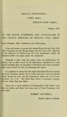 [Report 1952] / Medical Officer of Health, Burton-upon-Trent County Borough.