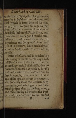 Credit: Seabrookes caveat: or his warning piece to all his loving country-men, to beware how they meddle with the eyes / [Richard Seabrooke]. Source: Wellcome Collection.