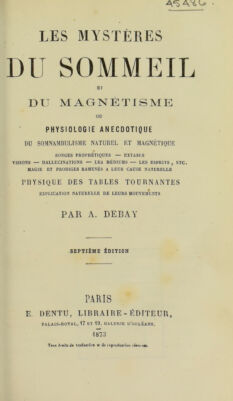 Les mystères du sommeil et du magnétisme, ou, Physiologie anecdotique du sommambulisme naturel et magnétique / par A. Debay.