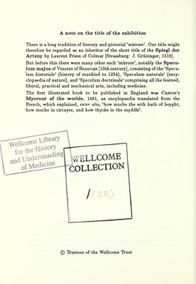 Credit: A mirror for medicine : some resources of the Wellcome Institute Library an exhibition, Monday 19 October - Friday 18 December 1987. Source: Wellcome Collection.