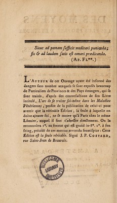 Credit: Des moyens les plus propres a éteindre les maladies vénériennes, pour servir de suite à l'Art de se traiter soi-même dans les maladies vénériennes / [Edme-Claude Bourru]. Source: Wellcome Collection.