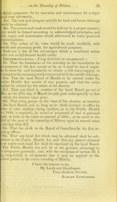 Report to the General Board of Health on a supplemental inquiry into the sewerage, drainage, and supply of water, and the sanitary condition of the inhabitants of the township of Bilston, situated within the municipal borough and union of Wolverhampton, in the county of Stafford / by Robert Rawlinson, Superintending Inspector.