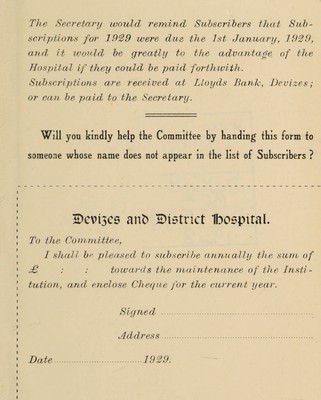 Credit: Annual report with statement of accounts and list of subscibers to the Devizes & District Hospital : 1928. Source: Wellcome Collection.