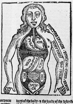 Credit: M0014450: Anatomical figure showing the internal organs of the body by Brunschwig, 1525. Source: Wellcome Collection.