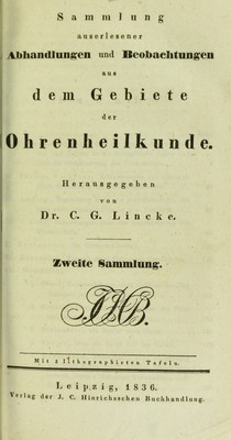 Sammlung auserlesener Abhandlungen und Beobachtungen aus dem Gebiete der Ohrenheilkunde / herausgegeben von C.G. Lincke.