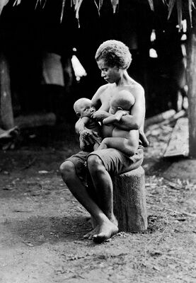 Credit: M0013581: An Ashanti mother carrying her child /M0013582: A woman breastfeeding two babies, West Africa. Source: Wellcome Collection.