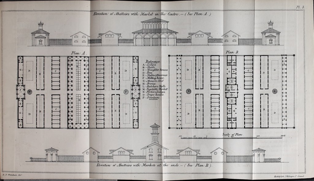 Credit: A treatise on public slaughter-houses, considered in connection with the sanitary question : describing the practice of slaughtering in France and England, with an historical and statistical account of the abattoirs of Paris, and accompanied by plans, with the view to the introduction of similar establishments into England / By Richard B. Grantham, C.E. Source: Wellcome Collection.