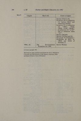 Credit: Further and Higher Education Act 1992 : chapter 13. Source: Wellcome Collection.