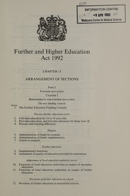 Credit: Further and Higher Education Act 1992 : chapter 13. Source: Wellcome Collection.