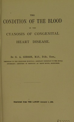 The condition of the blood in the cyanosis of congenital heart disease / by G. A. Gibson.