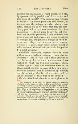 Credit: Man a machine / by Julien Offray de La Mettrie. French-English ; including Frederick the Great's "Eulogy" on La Mettrie and extracts from La Mettrie's "The natural history of the soul" ; philosophical and historical notes by Gertrude Carman Bussey. Source: Wellcome Collection.