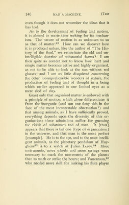 Credit: Man a machine / by Julien Offray de La Mettrie. French-English ; including Frederick the Great's "Eulogy" on La Mettrie and extracts from La Mettrie's "The natural history of the soul" ; philosophical and historical notes by Gertrude Carman Bussey. Source: Wellcome Collection.