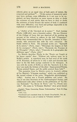 Credit: Man a machine / by Julien Offray de La Mettrie. French-English ; including Frederick the Great's "Eulogy" on La Mettrie and extracts from La Mettrie's "The natural history of the soul" ; philosophical and historical notes by Gertrude Carman Bussey. Source: Wellcome Collection.