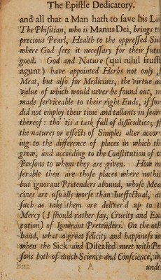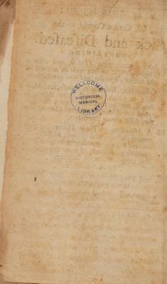 Credit: Levamen infirmi: or, cordial counsel to the sick and diseased. Containing I. Advice concerning physick and what a physician ought to be; with an account of the author's remedies ... II. Concerning melancholy, frensie, and madness; in which ... is shew'd, how far they differ from a conscience opprest with ... sin ... III. A miscellany of pious discourses ... To which are added several predictions of what may happen to end of the world / [David Irish]. Source: Wellcome Collection.