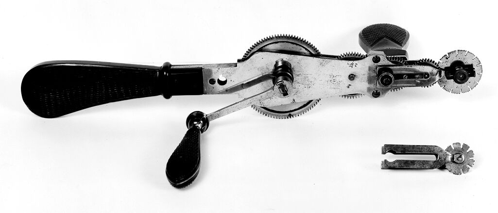 Credit: M0011172: Circular saw with spare blade, sometimes called a skull plough. Source: Wellcome Collection.