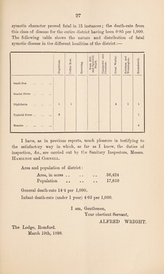 Credit: Annual report of the Medical Officer of Health 1897 / Romford Rural District Council. Source: Wellcome Collection.