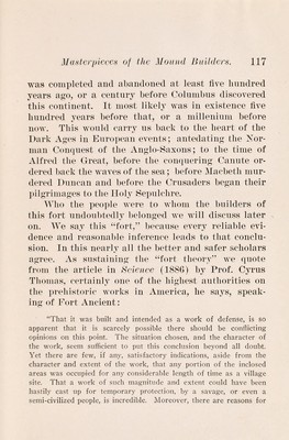 The masterpieces of the Ohio mound builders : the hilltop fortifications, including Fort Ancient / by E.O. Randall.