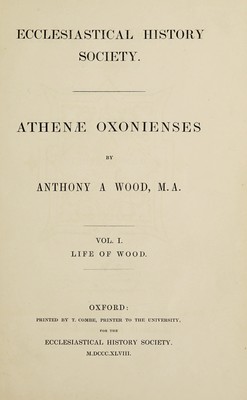 Athenæ Oxonienses, and exact history of writers and bishops who have had their education in the University of Oxford ... / [Anthony à Wood].