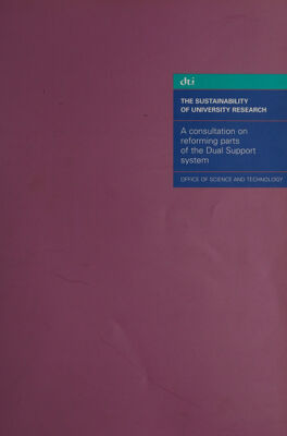 The sustainability of university research : a consultation on reforming parts of the Dual Support system / Office of Science and Technology.