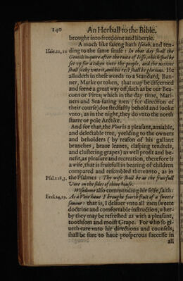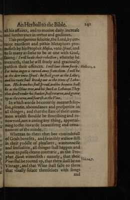 An herbal for the Bible. Containing a plaine and familiar exposition of such similitudes, parables, and metaphors, both in the Olde Testament and the Newe, as are borrowed and taken from herbs, plants, trees, fruits and simples, by observation of their vertues, qualities, natures, properties, operations, and effects / ... Drawen into English by Thomas Newton.