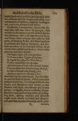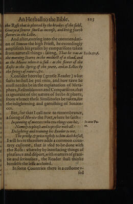 An herbal for the Bible. Containing a plaine and familiar exposition of such similitudes, parables, and metaphors, both in the Olde Testament and the Newe, as are borrowed and taken from herbs, plants, trees, fruits and simples, by observation of their vertues, qualities, natures, properties, operations, and effects / ... Drawen into English by Thomas Newton.