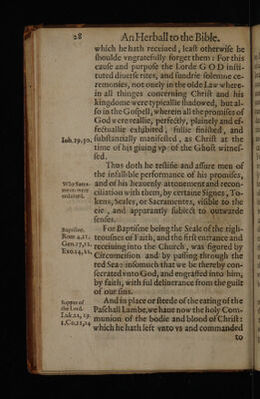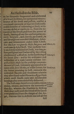 An herbal for the Bible. Containing a plaine and familiar exposition of such similitudes, parables, and metaphors, both in the Olde Testament and the Newe, as are borrowed and taken from herbs, plants, trees, fruits and simples, by observation of their vertues, qualities, natures, properties, operations, and effects / ... Drawen into English by Thomas Newton.