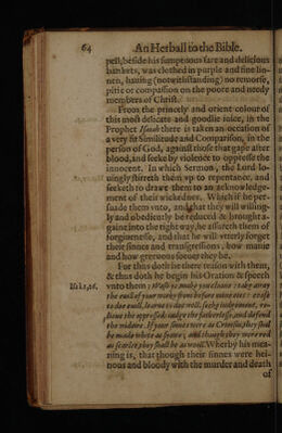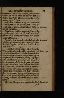 An herbal for the Bible. Containing a plaine and familiar exposition of such similitudes, parables, and metaphors, both in the Olde Testament and the Newe, as are borrowed and taken from herbs, plants, trees, fruits and simples, by observation of their vertues, qualities, natures, properties, operations, and effects / ... Drawen into English by Thomas Newton.