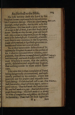 An herbal for the Bible. Containing a plaine and familiar exposition of such similitudes, parables, and metaphors, both in the Olde Testament and the Newe, as are borrowed and taken from herbs, plants, trees, fruits and simples, by observation of their vertues, qualities, natures, properties, operations, and effects / ... Drawen into English by Thomas Newton.