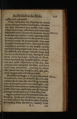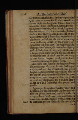 An herbal for the Bible. Containing a plaine and familiar exposition of such similitudes, parables, and metaphors, both in the Olde Testament and the Newe, as are borrowed and taken from herbs, plants, trees, fruits and simples, by observation of their vertues, qualities, natures, properties, operations, and effects / ... Drawen into English by Thomas Newton.