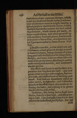 An herbal for the Bible. Containing a plaine and familiar exposition of such similitudes, parables, and metaphors, both in the Olde Testament and the Newe, as are borrowed and taken from herbs, plants, trees, fruits and simples, by observation of their vertues, qualities, natures, properties, operations, and effects / ... Drawen into English by Thomas Newton.