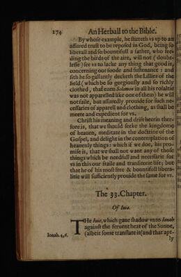 An herbal for the Bible. Containing a plaine and familiar exposition of such similitudes, parables, and metaphors, both in the Olde Testament and the Newe, as are borrowed and taken from herbs, plants, trees, fruits and simples, by observation of their vertues, qualities, natures, properties, operations, and effects / ... Drawen into English by Thomas Newton.