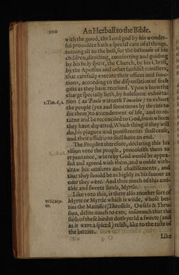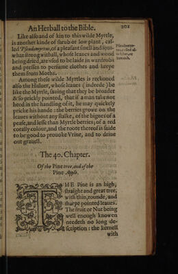 An herbal for the Bible. Containing a plaine and familiar exposition of such similitudes, parables, and metaphors, both in the Olde Testament and the Newe, as are borrowed and taken from herbs, plants, trees, fruits and simples, by observation of their vertues, qualities, natures, properties, operations, and effects / ... Drawen into English by Thomas Newton.