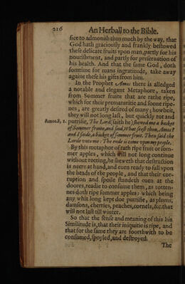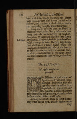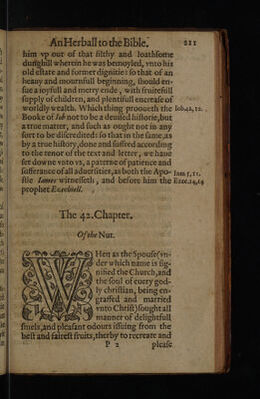 An herbal for the Bible. Containing a plaine and familiar exposition of such similitudes, parables, and metaphors, both in the Olde Testament and the Newe, as are borrowed and taken from herbs, plants, trees, fruits and simples, by observation of their vertues, qualities, natures, properties, operations, and effects / ... Drawen into English by Thomas Newton.