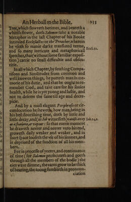 An herbal for the Bible. Containing a plaine and familiar exposition of such similitudes, parables, and metaphors, both in the Olde Testament and the Newe, as are borrowed and taken from herbs, plants, trees, fruits and simples, by observation of their vertues, qualities, natures, properties, operations, and effects / ... Drawen into English by Thomas Newton.
