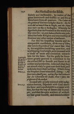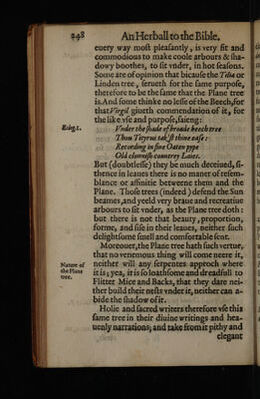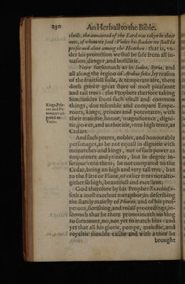 An herbal for the Bible. Containing a plaine and familiar exposition of such similitudes, parables, and metaphors, both in the Olde Testament and the Newe, as are borrowed and taken from herbs, plants, trees, fruits and simples, by observation of their vertues, qualities, natures, properties, operations, and effects / ... Drawen into English by Thomas Newton.