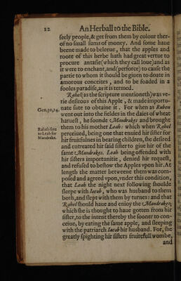Credit: An herbal for the Bible. Containing a plaine and familiar exposition of such similitudes, parables, and metaphors, both in the Olde Testament and the Newe, as are borrowed and taken from herbs, plants, trees, fruits and simples, by observation of their vertues, qualities, natures, properties, operations, and effects / ... Drawen into English by Thomas Newton. Source: Wellcome Collection.