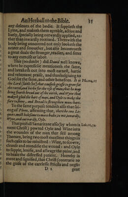An herbal for the Bible. Containing a plaine and familiar exposition of such similitudes, parables, and metaphors, both in the Olde Testament and the Newe, as are borrowed and taken from herbs, plants, trees, fruits and simples, by observation of their vertues, qualities, natures, properties, operations, and effects / ... Drawen into English by Thomas Newton.
