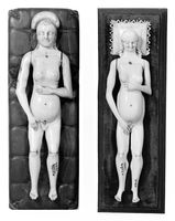 M0018661EA: Anatomical figures in ivory; two pregnant females. Attribution 4.0 International (CC BY 4.0). Source: Wellcome Collection.