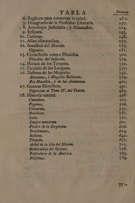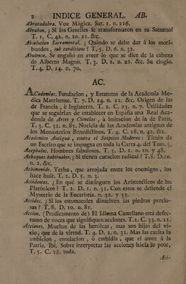 Credit: Indice general alfabetico, de las cosas notables, que contienen todas las obras del muy ilustre Señor D. Fr. Benito Geronimo Feijoó : inclusas las dedicatorias, aprobaciones, y prologos, y tambien los dos tomos de la Demonstracion critico-apologética, que en defensa del Teatro critico escribió el Rmo. P.M.D.Fr. Martin Sarmiento / Dispuesto por Don Joseph Santos. Source: Wellcome Collection.
