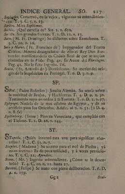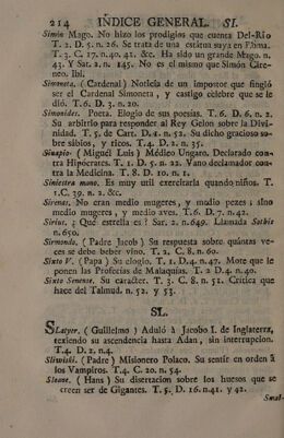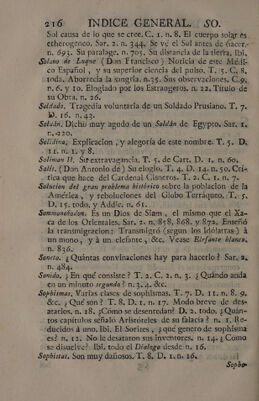 Indice general alfabetico, de las cosas notables, que contienen todas las obras del muy ilustre Señor D. Fr. Benito Geronimo Feijoó : inclusas las dedicatorias, aprobaciones, y prologos, y tambien los dos tomos de la Demonstracion critico-apologética, que en defensa del Teatro critico escribió el Rmo. P.M.D.Fr. Martin Sarmiento / Dispuesto por Don Joseph Santos.