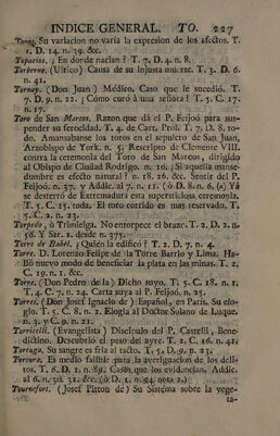 Indice general alfabetico, de las cosas notables, que contienen todas las obras del muy ilustre Señor D. Fr. Benito Geronimo Feijoó : inclusas las dedicatorias, aprobaciones, y prologos, y tambien los dos tomos de la Demonstracion critico-apologética, que en defensa del Teatro critico escribió el Rmo. P.M.D.Fr. Martin Sarmiento / Dispuesto por Don Joseph Santos.