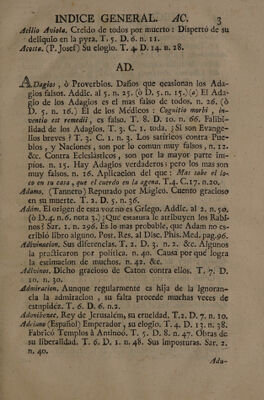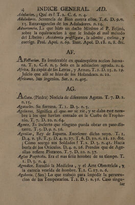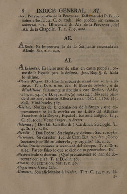 Indice general alfabetico, de las cosas notables, que contienen todas las obras del muy ilustre Señor D. Fr. Benito Geronimo Feijoó : inclusas las dedicatorias, aprobaciones, y prologos, y tambien los dos tomos de la Demonstracion critico-apologética, que en defensa del Teatro critico escribió el Rmo. P.M.D.Fr. Martin Sarmiento / Dispuesto por Don Joseph Santos.