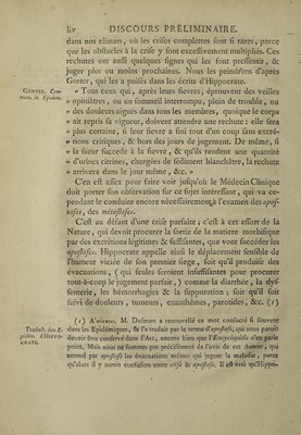 Observations sur les maladies épidémiques, ouvrage rédigé d'après le tableau des Épidémiques d'Hippocrate, et dans lequel on indique la meilleure méthode d'observer ce genre de maladie ... On y a présenté à côté de chaque observation ... l'administration des remedes, leur effet, les signes de coction, les jugemens de la maladie, les pouls critiques, etc / par M. Lépecq de la Cloture.