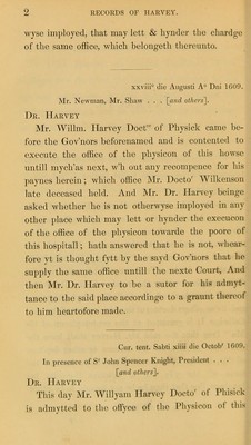 Credit: Records of Harvey : in extracts from the journals of the Royal Hospital of St. Bartholomew / with notes, by James Paget. Source: Wellcome Collection.