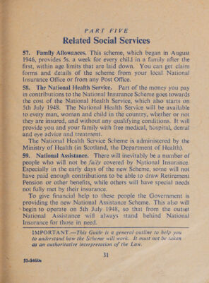 Credit: Family guide to the national insurance scheme : the scheme comes into full operation on 5th July 1948 / prepared by the Central Office of Information for the Ministry of National Insurance. Source: Wellcome Collection.