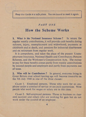 Credit: Family guide to the national insurance scheme : the scheme comes into full operation on 5th July 1948 / prepared by the Central Office of Information for the Ministry of National Insurance. Source: Wellcome Collection.